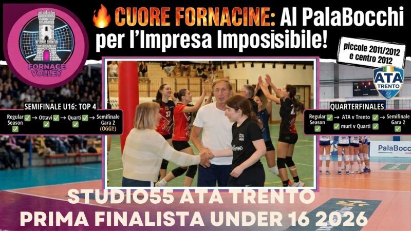 Complimenti allo Studio55 ATA Trento, una squadra solida e cinica che si merita la finale. Ma gli applausi più grandi vanno al Fornace Volley: essere tra le Top 4 della regione (su 27 squadre totali) e aver giocato una semifinale di questo spessore con un gruppo giovanissimo (atlete del 2011 e 2012) è un traguardo leggendario.